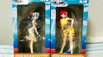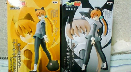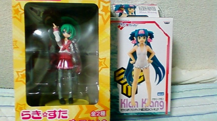 ……それだけ理由つけなきゃゲーセンにも行けんのかい(笑 え?結果? 四条からa-choまでは歩くな しかし地下道を通れば迷うことはないがな… ンなこっちゃあねーよ!「結果」の事聞いてんだよ 何か景品はとれたのかよッ!? 500円玉が13~4枚以上はあったんだぜッ! それがよぉ~ ちと予想外の事態が起こってよぉ~~~ よ……………予想外? 予想外に6個ものフィギュアがとれたぜェ―――――――ッ! ギャァァァ――――――ッ!! ……ジョジョの奇妙な冒険第4部ダイヤモンドは砕けない第36巻収録「重ちーの収穫 その3」の仗助と億泰の会話を改変してお送りしました(笑 さて、久しぶりに行ったa-choですが、私の主な出没地点プライズゲーム地帯がちょっと様変わりしてました。 ぬいぐるみ地帯はそのままだったのですが、私の得意とするUFOキャッチャー地帯はけいおん!のタオル、初音ミクのタオル(?)、添い寝シーツ(?)、フックをひっかけてとるマシンは初音ミクのグラスやとらドラ!のちびフィギュアといったようにそそられる景品が皆無でした。 キャッチャーゾーンにあって、欲しいと思えたのは、キャッチャーのアームを外したもので箱を押し出して景品をとるらき☆すたフィギュア2種と同じマシンの奥にあるどこでもいっしょのハロウィン仕様のフィギュア。 それ以外のフィギュアは全て魔のマシン「ファンシースイープウィンドウ(公式ページ?)」に収監(笑)されています。 その数実に10種! 左上から マクロスF クラン・クラン大尉 水着フィギュア 天元突破グレンラガン ヨーコ 水着フィギュア 天元突破グレンラガン ニア 水着フィギュア ケロロ軍曹 アリサ(カチューシャVer)フィギュア ケロロ軍曹 アリサ(コウモリVer)フィギュア 右上から fate? セイバーフィギュア ルパン三世 ルパンフィギュア とらドラ! ラジコン(?) ひぐらしのなく頃に 羽入 水着フィギュア ひぐらしのなく頃に 古手梨花 水着フィギュア といった配置でした。 このラインナップは私にとってかなり魅力的です。 グレンラガン、ケロロ軍曹はもちろん再放送されているマクロスFでの大尉に惚れ込みましたかんね。 ひぐらしのロリ担当2人もちょっと欲しかったり。本命は沙都子だけどね。 しかしこのマシン……過去(記事はこちら)には苦い経験しかないのです……。 過去をなんとか振り払い、ダメもとで500円(6回)を投入してやってみたのです。 失敗、失敗、失敗、失敗、しっぱ……せ、成功!成功したよ皆!……失敗 今まで2000円近くつぎ込んできた憎きファンシーryなのに最初の500円玉で獲得! 一番下に配置されてたアリサ・サザンクロス(コウモリVer)をゲットしますた。 勢いにのった私はまた500円を投入してクラン大尉を狙いますが……2回連続で失敗。 近場から落としていこうと考えを改め、残り4回はニアを落とすことに集中しました。 そしたら見事!4回目の挑戦でニアを落とすことに成功しました。 2個のフィギュアを1000円で入手できた私はもうほくほくです。 この勢いにのろうかとも考えたのですが、あまり熱くなるとダメだと思い一度マシンを離れました。 そして次に向かったのはらき☆すたのみなみが配置されている、アームの本体で押して落とすキャッチャー。 これはコツをつかむのに少し時間がかかり、最初の500円(6回)でずらせた距離はたったの3cm。 次の500円のうち4回でさらに6cmずらし、穴に箱が3cmほどかかるまでに押し込みました。 残り2回で穴にかかった箱の端を押し込んでゲットするつもりだったのですが……なんと調整を間違え3cmほど戻してしまいましたorz 最後の1回で少し戻したあと、さらに500円玉を2枚使います。 今度は慎重に慎重に行って8回目かな?確かそのくらいまでずらして、きちんと落とし込んでGET。 が、穴の途中でひっかかってしまい、テンパって店員さん呼びに行きました(笑 周りに人がいたので気が気じゃなかったけど、まぁそんなに慌てる必要があるほど悪い人はいないわけで。 ちゃんと回収してもらい3個目のフィギュアをゲットしました。 ちなみに残り回数は新たに出してもらったゆたか(?)のフィギュアを少しずらしただけです。 次の人の助けになればと(笑 3個目もゲットして気分よくファンシーryの前に戻るとなんと梨花ちゃんフィギュアがなくなっていました。 右側では一番欲しかったものなので少しだけ落ち込みましたが、本命は左側なのでキニシナイ(゚3゚)! また500円を投入して気づいたのですが、斜め後ろになにやら人影が…… 実はニアとってるときから視界には入ってはいたのですが(笑)私のプレイを見ていた中・高生くらいの少年が2人。3人だったかも。たぶん2人。 ギャラリーというにはささやかですが、人が見てるとあって少しだけ緊張しました。 ……その緊張が功を奏したのか、500円玉一枚でヨーコ、アリサの2個をゲットできました。 心臓バクバクですよw こんなにうまくいったのなんて初めてですからね。 ここまでで累計5個のフィギュアを獲得したわけです。 もう帰ろうかと思いましたが、最後の思