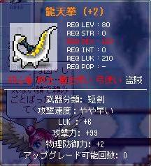 じっくりたっぷり3時間。 そうです。来ました。 Lv80! やっとこさ買っておいた龍天拳を装備することができるのです! 早速装備~♪ …… DEX足りてなーーーーーーーーーい!(泣 装備に必要なDEXは120。 素DEXは100。 事前に作っておいたD10マント、シュピネクD1、犬鼻D1、帽子D3、靴D1。 これ合わせても4足りないorz 仕方なくDEX4のイヤリングを購入しました。 ちょうど好みな形のクリスタル.F.リングがあったのでこれに決めまし 装備したところで今日は終了。 試し斬りは明日に(もう今日か)持ち越します。 本日のドロ品。 救命浮き輪×5 ヒルダンブーツ(黄)×3 クリスタル.F.リング ブルームーン カラッフ(灰赤) 青月 将軍鎧下(黄) タムス 綿白宮(青) 土手裏剣 PR |