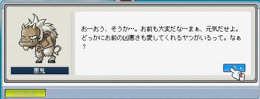 某ギルド副マスターに預けておいたジャクムの兜が成長して戻ってきました。 おかえりたかもり(何故ry! ! 紅さん、紅さんのご友人の方、ホントにありがとうございました。 あとは素早さ兜書を見つけるだけです。 あと前に作っておいた犬鼻に10%が2回?成功しました。 DEX6です。すごいです。目標突破です。 時間の神殿で貯まったクリスタルを精錬したら力中級、敏捷中級ができたのでメーカーで全身鎧を作ってみました。 まぁ使ったのは敏捷と闇クリ中級なんですけど。 素の能力がSTR7LUK3なので闇クリは+1の効果があったようです。 3つの能力に作用したから中級クリスタルの役目は果たしたというわけだ。エライ! さて、これに鳩が持ってた力全身書を貼って見ましょう。 YEAH!!!!!!!!! 一発成功! ……も、もう一枚くらい貼っても平気だよねフヒヒ…… ホントに成功しやがったうわああああああああああああ 2枚成功で紫装備ッスかwwwwww メーカーさんマジパネェッスwwwwwwww このカティナスに力60%をベタ貼りするつもりです。 もし早い段階で(残りUGが4までに、とか)STR補正が24か26に達したら素早さか幸運を貼るつもりです。 ……まぁそこまでうまくは行かないかw どうでもいいこと。 ボスでよく死にます。 リーリノフ(だっけ?後悔5にいるチェスの馬の駒みたいな奴)に2回挑戦して5回殺されて30%くらい減っちゃったよ。 2回目は戻ってくる間にとられちった。 おまけ。 鳩で達成した「嘘つきを騙せ!」クエストでの一コマ。 悪鬼に「お前の顔は凶悪だ」といわれたときにある返答を返すとこういう反応が。 ……こいつ結構いい奴じゃあないか? 侵略とかやめて一緒に暮らせよ。 PR |