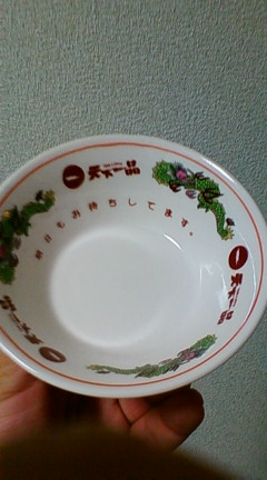 「買い物?」 「おう。今から帰るん?」 「や、どっかでメシ。」 「つれてけ」 「ラーメン屋でいいか?」 「望むところだ。」 で、チェーン店の「天下一品」に行ってきました。 ここのラーメンね、とにかく…… 濃い! こってりラーメンと銘打っているだけあってとんでもない濃さのラーメンです。 私はこってりの並を、彼はこってりチャーシュー大を注文。 彼に誘われてこの店に来たのできっと彼はなれているのでしょう。 私は1度来たときに濃さを嫌というほど味わったので並より大きいのは頼みません。 そのぶん無料サービスのもやしナムルやきゅうりのキムチを食べて腹を膨らませます。 さて、ラーメンが到着して食べ始め…… 食べ終わりました。 ふと彼のほうを見てみるとものすごいしかめっ面。 「ど、どーした?」 「……俺には…あわん……」 じゃあもっと小さいのを注文しろォーーッ! 結局半分くらい残してました。 私は初めて来た店でいっぱい頼めません。 彼は(ある意味)度胸がある男だと認識しました。 彼から代金をもらい、私が精算することにしてました。 なぜかって? それは…… こいつをもらうためさ!! 天下一品で3杯ラーメンを食べるともらえる「ミニ丼」。 これが欲しかったので一括精算にさせてもらいました。 ちっちゃくてかぁいいよー PR |