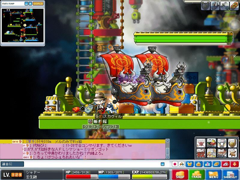 まずこれまでの主戦場リプレからルディブリアムへの移動中のことです。 ルディブリアム行きの船に乗り損ねたので武陵に飛んで、そこから鶴を使って白草村→アクアリウム→下町と移動して、最後にエレベーターに乗りました。 そのとき一緒になったヒーローさん(?きちんと確認してない。失敗したorz)が一言。 「ブログかなんかやってます?」 そう、なんと彼は読者さんだった(かもしれない)のです! いやぁ、FC2ランキングの上位だとかでたまに「読者さんとお話しました~♪」なんて書いてる人がいますけど……まさか自分がその立場になるとは思ってなかった(笑 彼とほんの少し(そうホントに少し。エレベーター短すぎるよー;)お話して我が心の故郷ルディブリアムに到着。 薬を補充してバイキング狩りに。 直後友チャで斬り賊クールさんからジャクムのたかもり(何故か変換できるけどしない)化はどうなったかを聞かれ「あとは蜜だけです」と返答。 そしたらなんと手伝ってくださるとのこと。 地獄に仏ェッ! SDTになったら自分も裏通りのドンパチに参加することを伝えてバイキング狩りを再開。 少し狩った所でなんと。 日の手裏剣ドロップ。 獅子の手袋攻撃書からほぼ1週間ぶりの大物ドロップ。 コレ以降は何も出ませんでしたがね(´ー)ノ その後、約束通りに裏通りへ行き、ヤクザとの戦争を開始。 …… ………… ……………… …………………… 出ねぇ 一向に蜜が出やがらないんですよコレが。 ザクチケ+SDTだよ? 4倍だよ? それで出たのが蜜2個だけだってんだから笑えねぇ。 クールさんなんか最初の半時間で5個拾って渡してくれたんだぜ? その後風呂落ちした後も狩って下さって4個も宅配してくれたんですよ? それなのに4倍1時間で2個ってどーゆーことだよ! 明日こそ出せよヤクザモン! ……クールさん、改めてありがとうございました。 唐突にコメント返し。 >>紅さん そこまで責任感じていただかなくても……(笑 もしよろしければお願いしたいですね。 今週中にはなんとか集めるのでご都合の良い時間帯を聞いておいていただけると嬉しいです。 よろすく! 蜜集めを手伝ってくださったクールさん、たかもり(何故かry)化のツテを紹介してくださった某ギルド副マスターこと紅夜交さん、そして生きる元気を下さった読者の方。 ありがとうございました。 いい奴ばかりじゃないけど、悪い奴ばかりでもない (By Train-Train ホントだね。 皆のおかげで元気出たよ! さんくす。 |