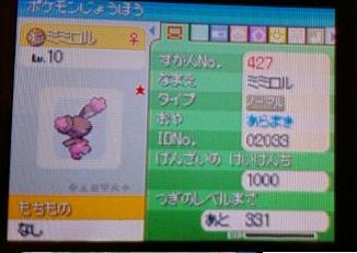 ミミロルがそれなりに続いたんで適当にやってたらレベル50越えのジバコイルのほうでんをレベル10そこらのミミロルが耐えやがった!? 余所見してた間の出来事。 麻痺ったんで一応捕まえておきましたが……。 何だったんだ(笑 |
