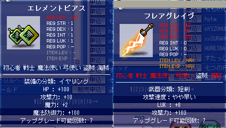 トウキョウレポートもレベル低くてできないし、狩りもできません。 せめてキャンペーンだけでも参加しようと思い、ポイント入れてきました。 ガシャってドラゴン!キャンペーン。 12/17までの期間中、ガシャポンを回すと一定確率で設置アイテム「ドラゴンチェア」がもらえるキャンペーンです。 質屋にあった財布といい、今回は金稼ぎたいネクソンに踊らされてる感はありますが……(笑 ま、狩りができない憂さ晴らしも兼ねて1000P11枚、やってまいりました。 その結果! 片手斧 桃マン ピルパ 両手斧 パンプキンスピア 幸運耳 知力マント 体力マント と来て…… 桃マン以外がゴミじゃないですか……orz そして諦めかけたその時! アイテムを得ました(ドラゴン(インフェルノ)) キタ━━━━━━(゚∀゚)━━━━━━ !!!!!キタ━━━━━━(゚∀゚)━━━━━━ !!!!! キタ━━━━━━(゚∀゚)━━━━━━ !!!!!キタ━━━━━━(゚∀゚)━━━━━━ !!!!! キタ━━━━━━(゚∀゚)━━━━━━ !!!!!キタ━━━━━━(゚∀゚)━━━━━━ !!!!! 何と1000Pで出ましたよ奥さん! 市場価格は1Gをくだらない代物!(注:このときは隆盛2個とかアホな価格で取引されてました。もうだいぶ下がってます。 1P=500kで売ったとすると2000円! 超黒字ですよ!! もうウッキウキで最後の2枚を使いました! アイテムを得ました(ドラゴン(インフェルノ)) アイテムを得ました(呪われた体力の書(鎧・上)) ………… …………………… ( ゚Д゚)ハァ? 2連続…… 2連続でドラゴンチェア出ちゃいましたよ! やっべ今日の運やっべぇ! さっきのとあわせたら4000円!? やっべまだまだ出来るよ!(笑 そして書をトレードに出そうと思ってMTS行ったわけですよ。 んで何気なく桃マンの能力見て驚愕したね、俺は。(倒置法 ………… ( Д ) ゚ ゚ポーン 攻撃4て。 攻撃4てアンタ。 標準が+2だよ? 4て。倍て。 こ、これいくらで売れるんだろう……(笑 もちろん売らずに自分で使いますがね! サブの戦士と弩にも使いまわせるように素早さ60%をベタ貼りしようと思います。 3枚宿れば万々歳さね! 運が良すぎて怖いです。 もうパッド直んないかもね(笑 |