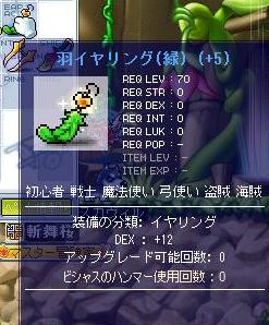 久しぶりに鼬がレベルアップ。 レベル141になりました。 素早さ耳100%書を2枚持ってるキャラを発見したので羽イヤに貼って七色の書。 1つは2枚目の七色でS5D5まで行ったのにその後一気に落ちてSTR3に落ち着きました。 もう一つはS2D1→S3D3→S5D5→S1D7→D12となかなか波乱の人生(笑)を送りました。 っていうかもともとの能力値なくなってるやないですか(笑 SPは暗殺を5まで振りました。 今 BS30 フェイク15 ベノム5 暗殺5 MH9 煙幕弾1 ショーダウン1 かな。 とりあえず暗殺を10まで上げて、マスタリが成功すればそのまま突っ走り、しなかったらMHとフェイク上げるつもりです。 ……しかしタイムリーフイヤリング育てつつ狩るのは面倒くさいなぁ…… DEX足りないから武器はGツインだし。 早く成長しきったのに耳60をベタ貼りしたいものです。 PR |