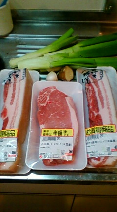 豚肉が安く、鍋に使った葱の残りの青いとこがあったので、チャーシューを作ってみました。